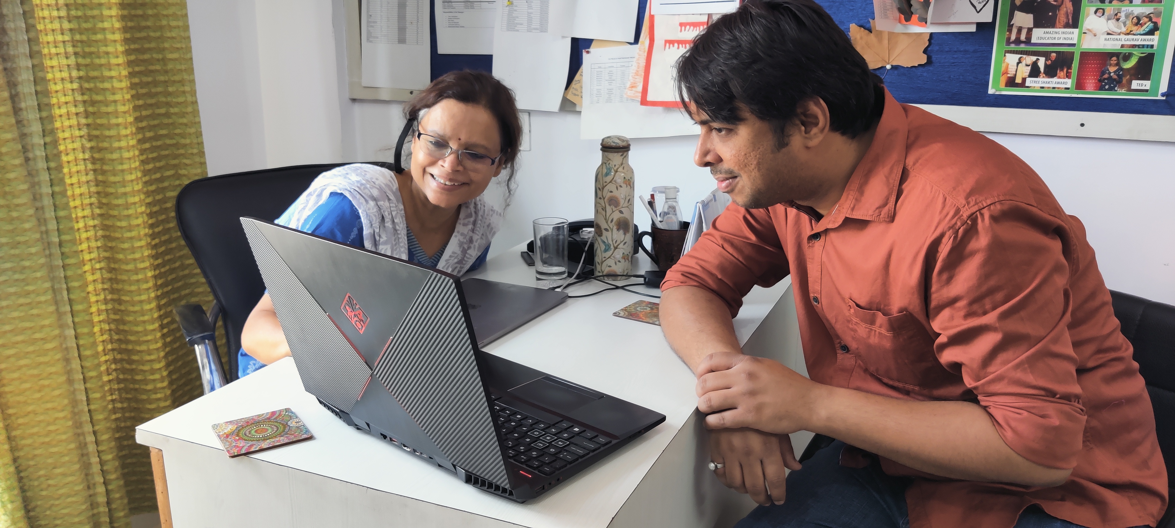 Moment: Mrs.Ruma Roka and Deaf team member at Noida Deaf Society exploring Let'sTalkSign solution